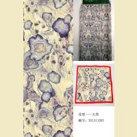 印花緞面桃皮絨面料采用滌綸75D/72F、緯絲采用滌綸150D/288F為原料,織造規格按260T選用緞紋組織,在噴水織機上織造,先后又經過漂白+印花等主要工藝精加工而成。面料手感柔軟、滑糯,風格奇特、易洗耐用等特點,幅寬150cm,重量160g/m2。