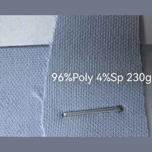 采購如圖滌綸緯彈坯布,230gsm,96%滌4%氨