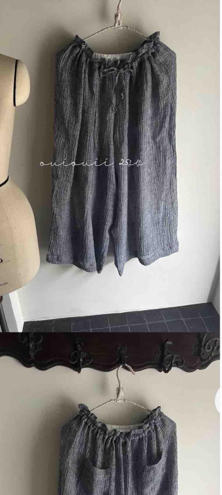 • 闊腿褲仿麻面料