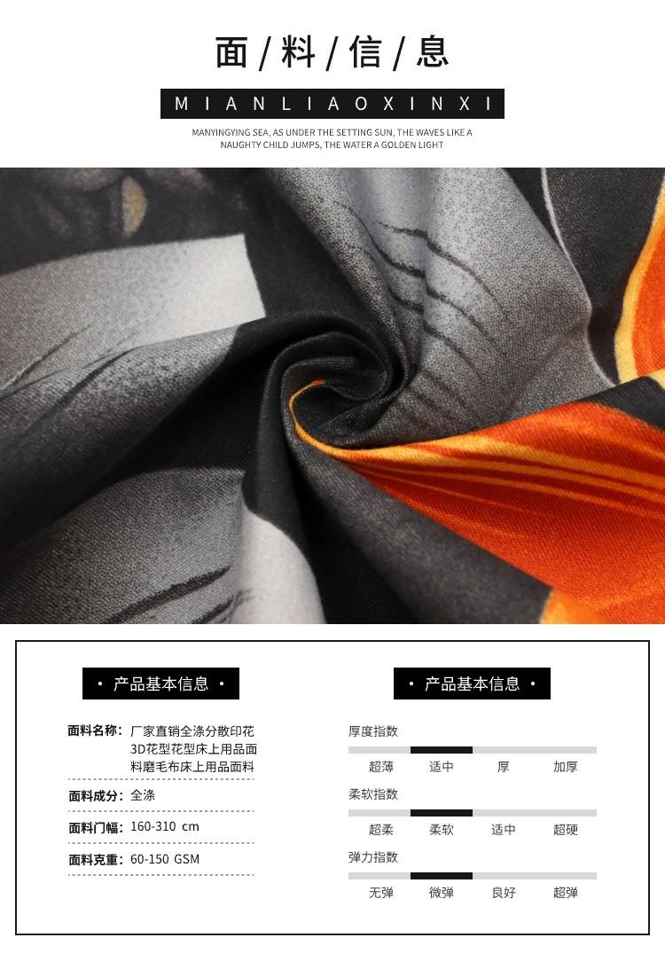廠家直銷全滌分散印花3D花型床上用品面料磨毛布床上用品面料