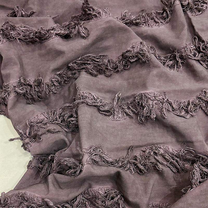 復古煙紫色做舊梭織 小眾設計師流蘇肌理面料 服裝外套連衣裙布料