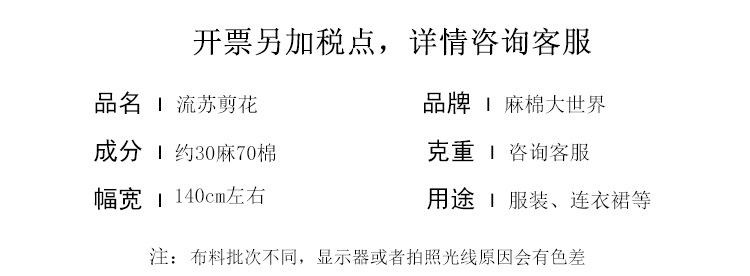 克重 咨詢客服 g/㎡ 成分 約30麻70棉