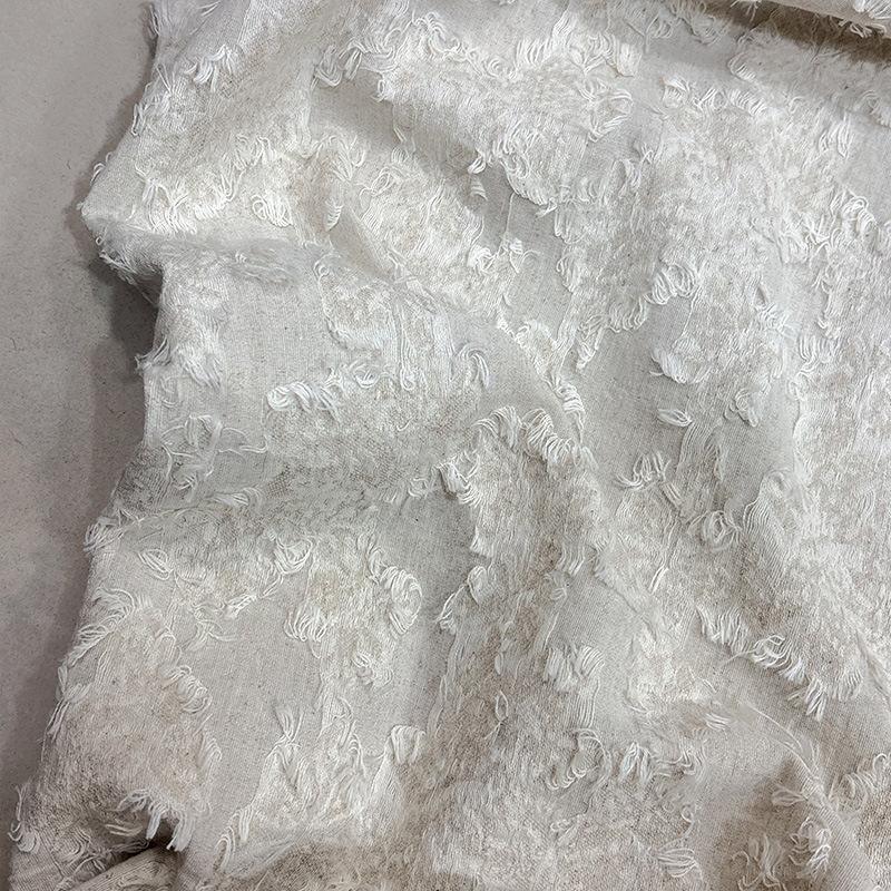麻棉剪花流蘇提花布料 麻本色肌理感面料 外套裙裝小眾布料