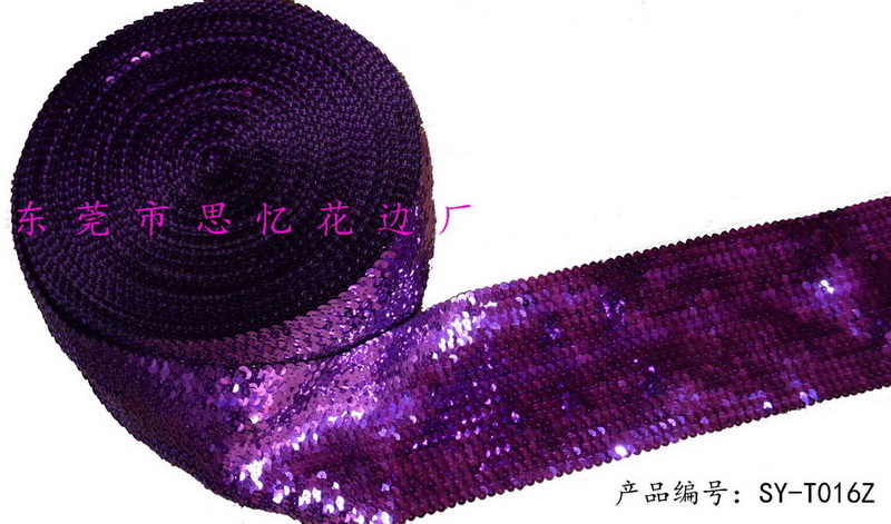 思憶花邊專業生產彈力珠片帶(亮片織帶),彈性珠片帶適用于服裝服飾、紡織飾品、精品小飾品、頭飾等。彈力珠片帶可按客戶要求加工成各種規格,如(1排,2排,3排,10排,20排……),*寬能做100CM。無顏色限制,按相對應的顏色配色。歡迎來電咨詢、恰談,可按客戶樣品、圖片生產加工,亦可來料加工等。