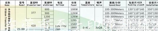 織帶印花機規格表: