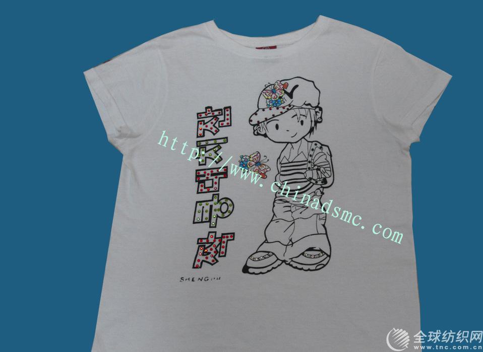c>產品上印有圖案,在圖案周圍燙鉆;