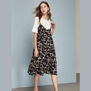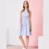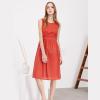 女裝春夏季節(jié)蕾絲面料縮褶圓領(lǐng)系帶收腰無袖中長(zhǎng)款連衣裙