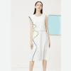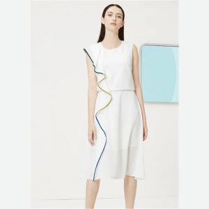 高檔V領(lǐng)無袖連衣裙 素色壓縐彈力裙子 梭織高低腳邊連衣裙