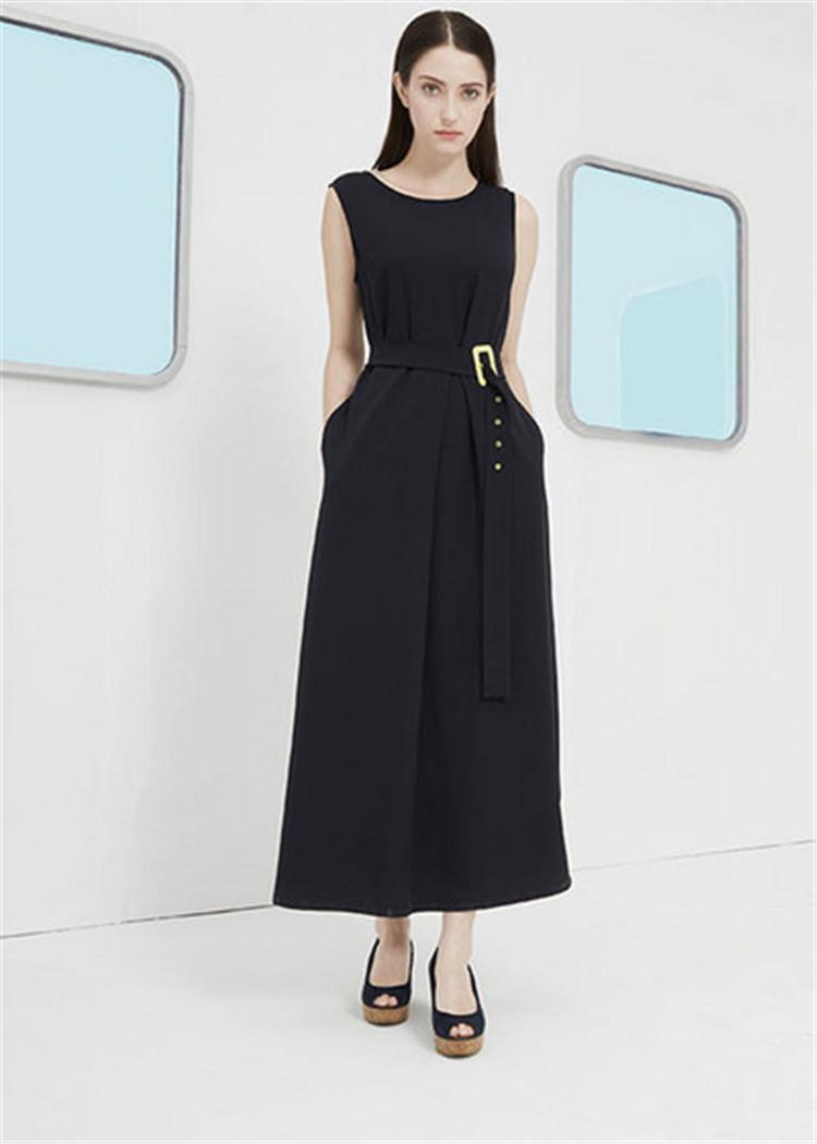無袖V領(lǐng)梭織連衣裙 性感v領(lǐng)吊帶連衣裙 素色簡(jiǎn)約連衣裙