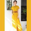 女裝春夏季節(jié)蕾絲面料縮褶圓領(lǐng)系帶收腰無袖中長(zhǎng)款連衣裙