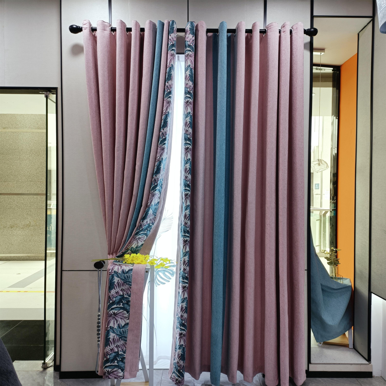 現(xiàn)貨供應(yīng)高檔無縫拼接窗簾天絲絨繡花工藝