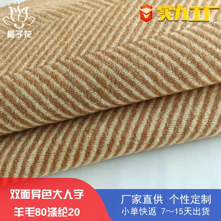 80毛駝色雙面異色大人字呢面料秋冬女裝外套毛呢布源頭工廠呢子布料