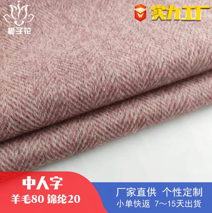80毛錦混紡中人字紋毛呢面料女裝秋冬外套羊毛呢布料廠家供應粗毛料