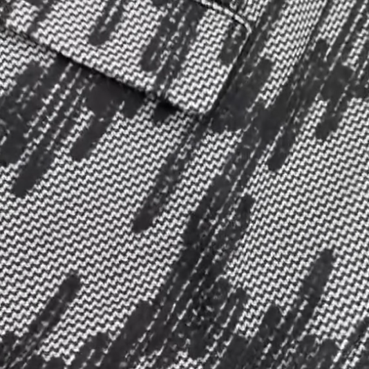 • 黑白千鳥格底紋上疊加不規則豎條肌理 復古挺括度與垂墜感