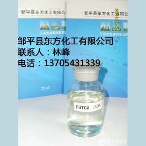 外觀:無色至淡黃色透明液體;活性組分(以PBTCA計) 48-52%;亞磷酸(以PO33-計) ≤0.5%;磷酸(以PO43-計) ≤0.2%;氯化物 (以Cl-計) ≤10 ppm;PH值(1%水溶液)1.5-2.0;密度(20℃) ≥1.27g/cm3,鐵(以Fe2+) ≤10.0ppm。
